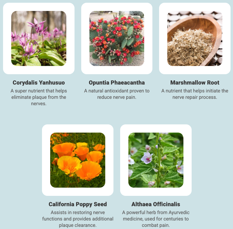 It combines clinically supported botanicals, vitamins, and minerals that target three essential levers of nerve health —